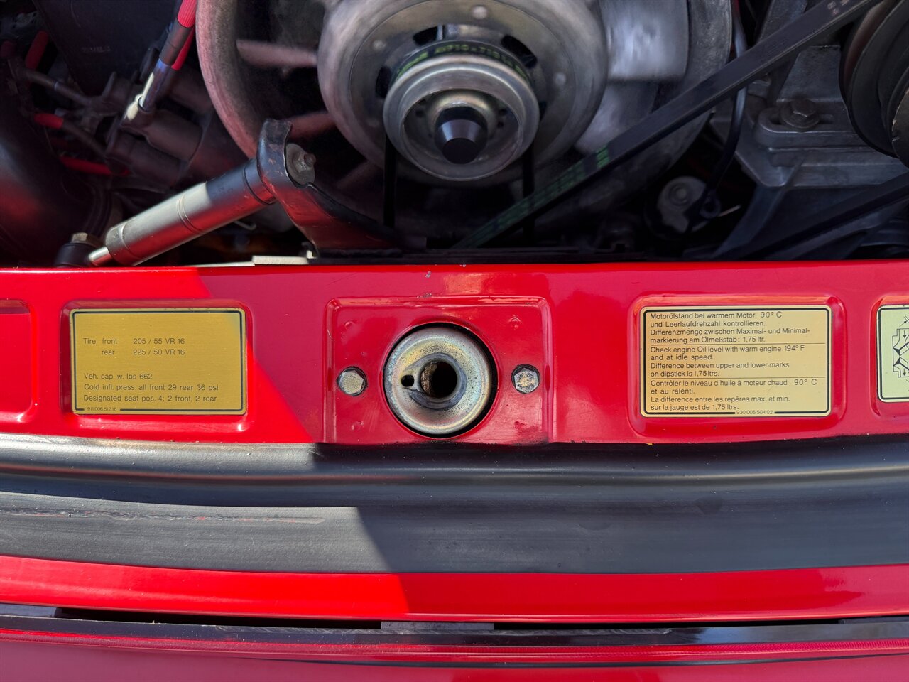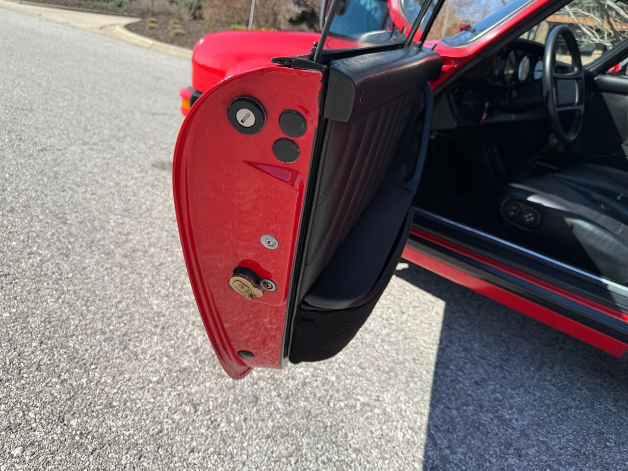 - Interior and instrumentation: Iconic Porsche five-gauge instrument cluster with central tachometer for precise engine monitoring; comfortable, supportive front seats in Black upholstery; center console with factory switchgear and storage; heating and ventilation controls. Steering wheel and interior trim retain the original, period-correct appearance.