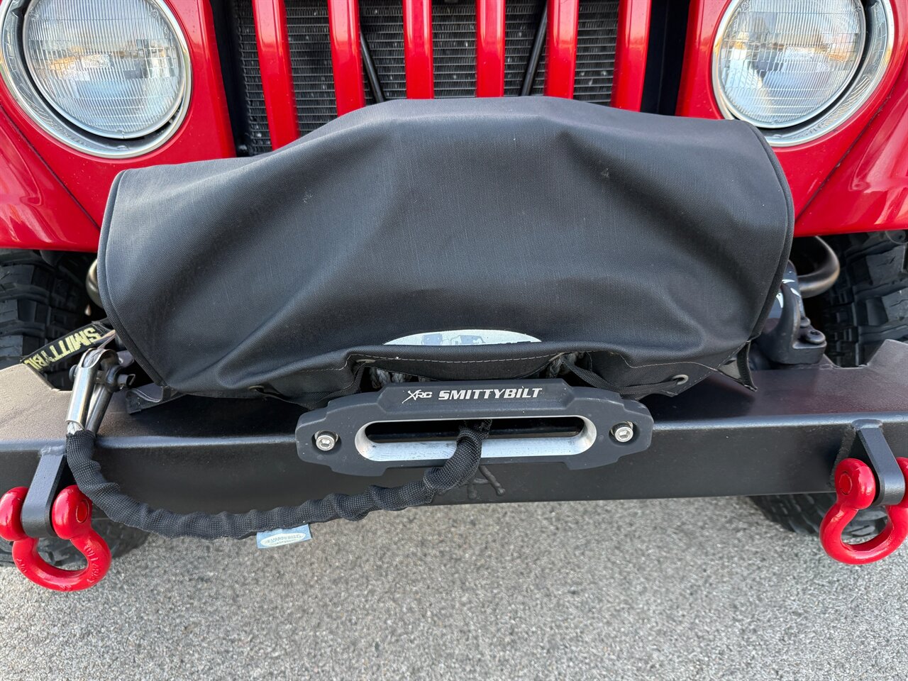 - **Rugged Exterior Features:** This Jeep is equipped with a hardtop roof that adds versatility and protection, as well as running boards for easy access. The Smittybilt winch offers added confidence when tackling challenging terrain, and the suspension lift enhances off-road capability.