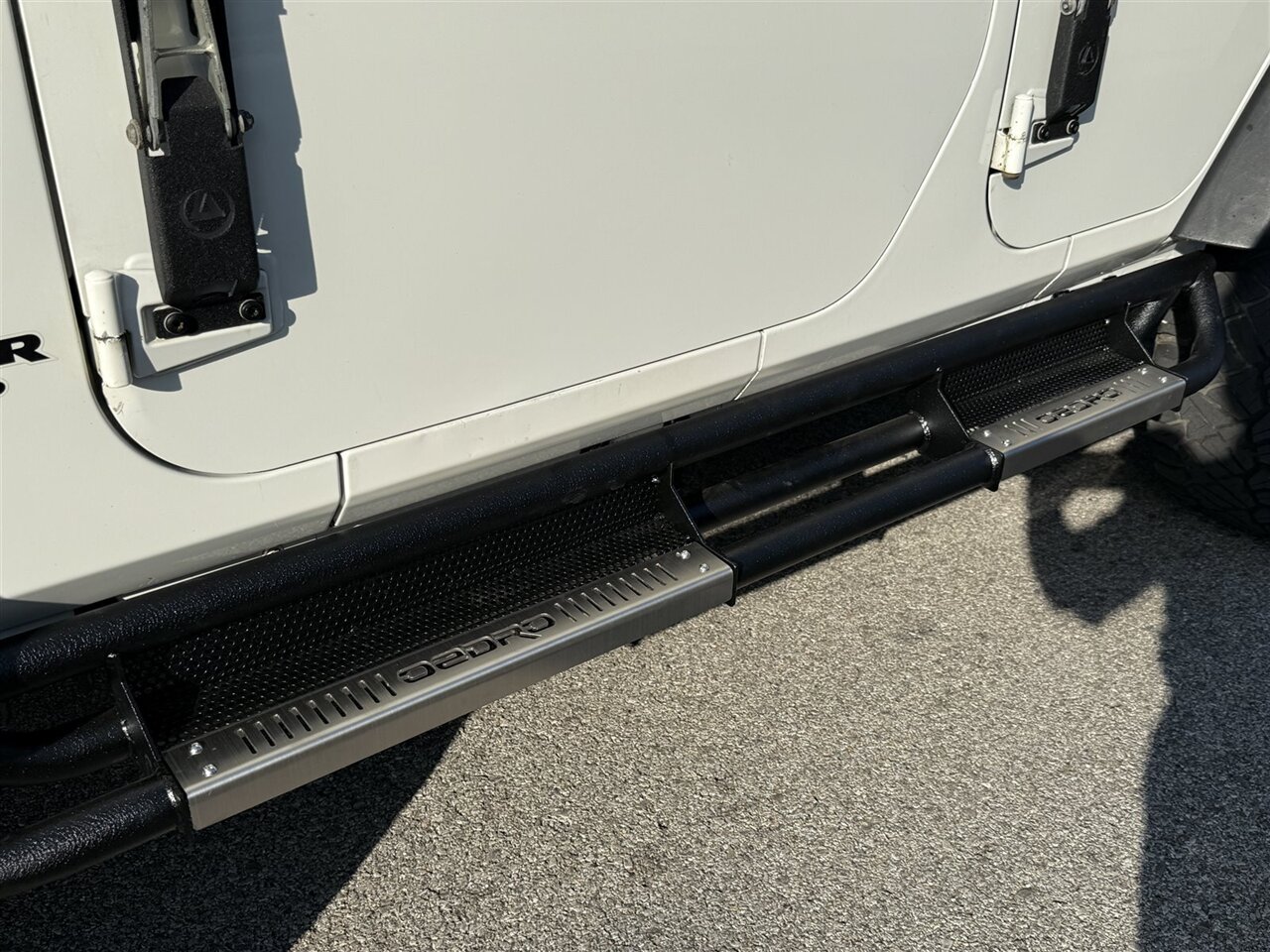 This Wrangler comes equipped with the Quick Order Package 24S, enhancing its capability and comfort. Standard features include 4-wheel drive, a removable top, and durable cloth seating for a practical yet comfortable ride. The vehicle also boasts essential amenities such as air conditioning, power windows, and keyless entry for added convenience. Additionally, Door Hinge foldway steps have been added making getting equipment, kayaks, etc on and off the roof rack.