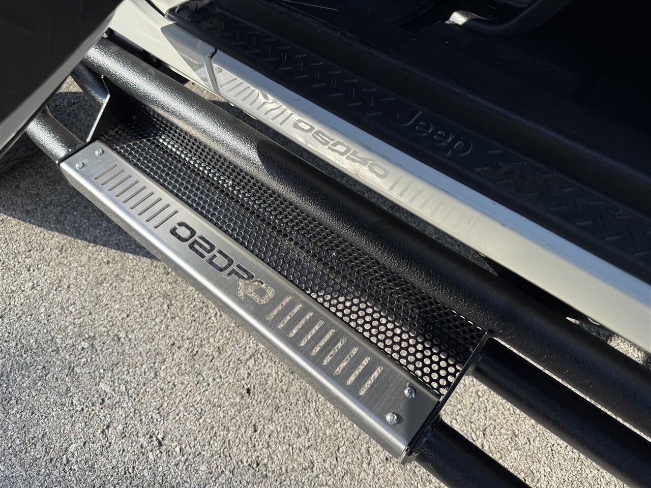 Noteworthy optional features include Supplemental Front Seat Side Air Bags for enhanced safety, a premium sound system with 6 Infinity speakers and a subwoofer for an enjoyable audio experience, and Sirius Satellite Radio for endless entertainment options. The Freedom Top 3-Piece Black Hard Top provides versatility for different weather conditions, while the Tubular Bodyside Steps facilitate easier entry and exit. The Anti-Spin Differential and Trailer Tow Group further enhance its off-road capabilities, making it an ideal choice for outdoor enthusiasts. Capability is further enhanced with a 3 inch lift, larger All Terrain tires, factory Skid Plate, Tubular side Steps/Rock Guards, etc. LED headlamps make the way ahead at night much brighter and safer!