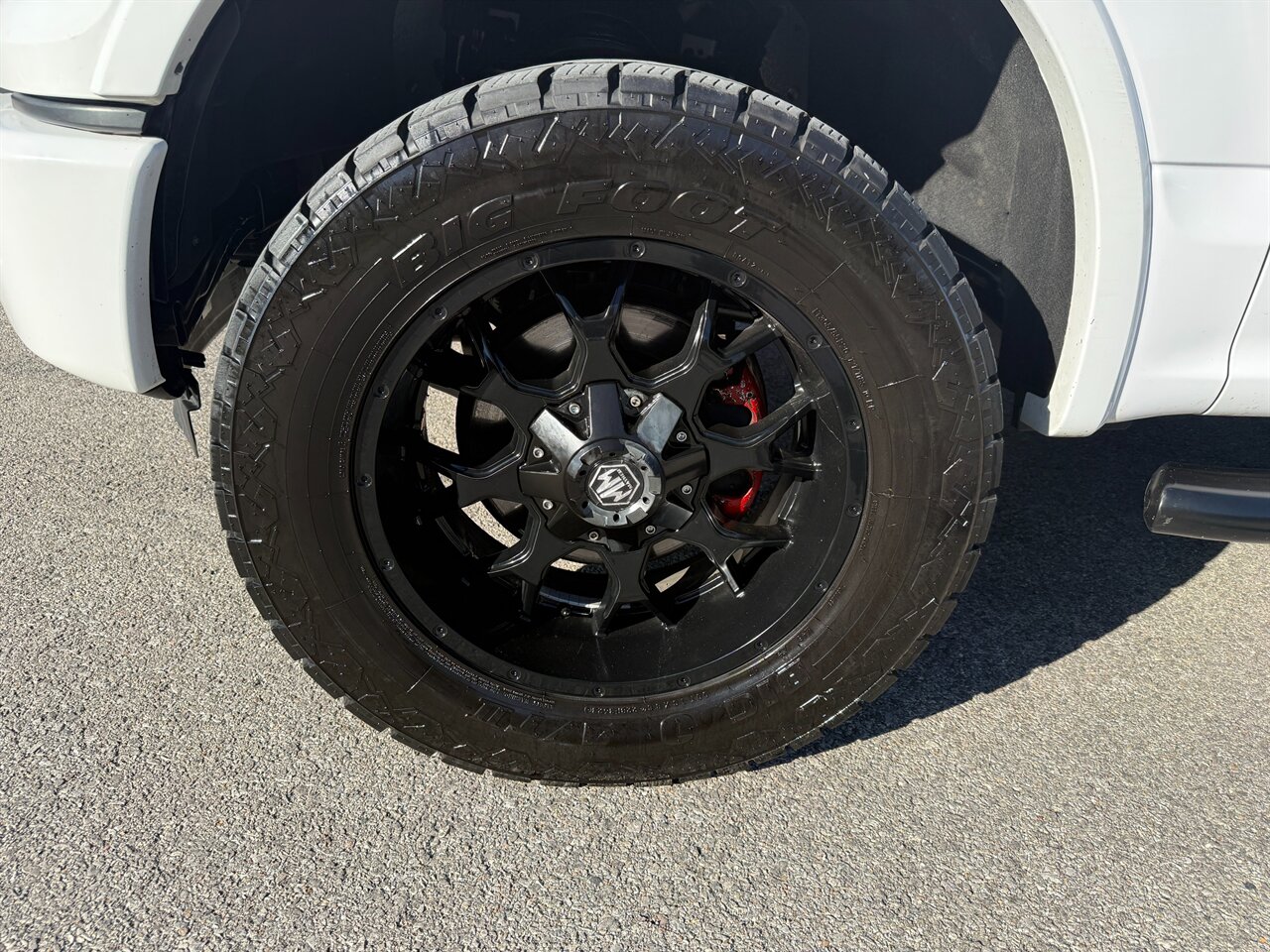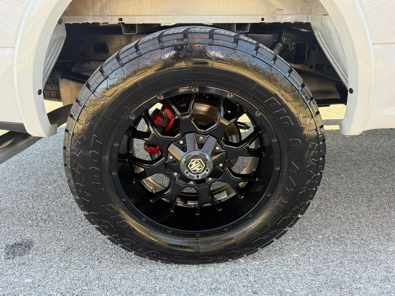 - Lariat Sport Appearance PackageIncludes 18 inch six-spoke machined-aluminum wheels with magnetic painted pockets, 275/65R18 OWL all-season tires, accent-color front bumper with body-color end caps, body-color rear bumper, accent-color angular step bars, accent-color three-bar style grille with accent-color surround and black mesh, box side decal, bucket seats with flow-through console and floor shifter, chrome single-tip exhaust, and unique interior finish.