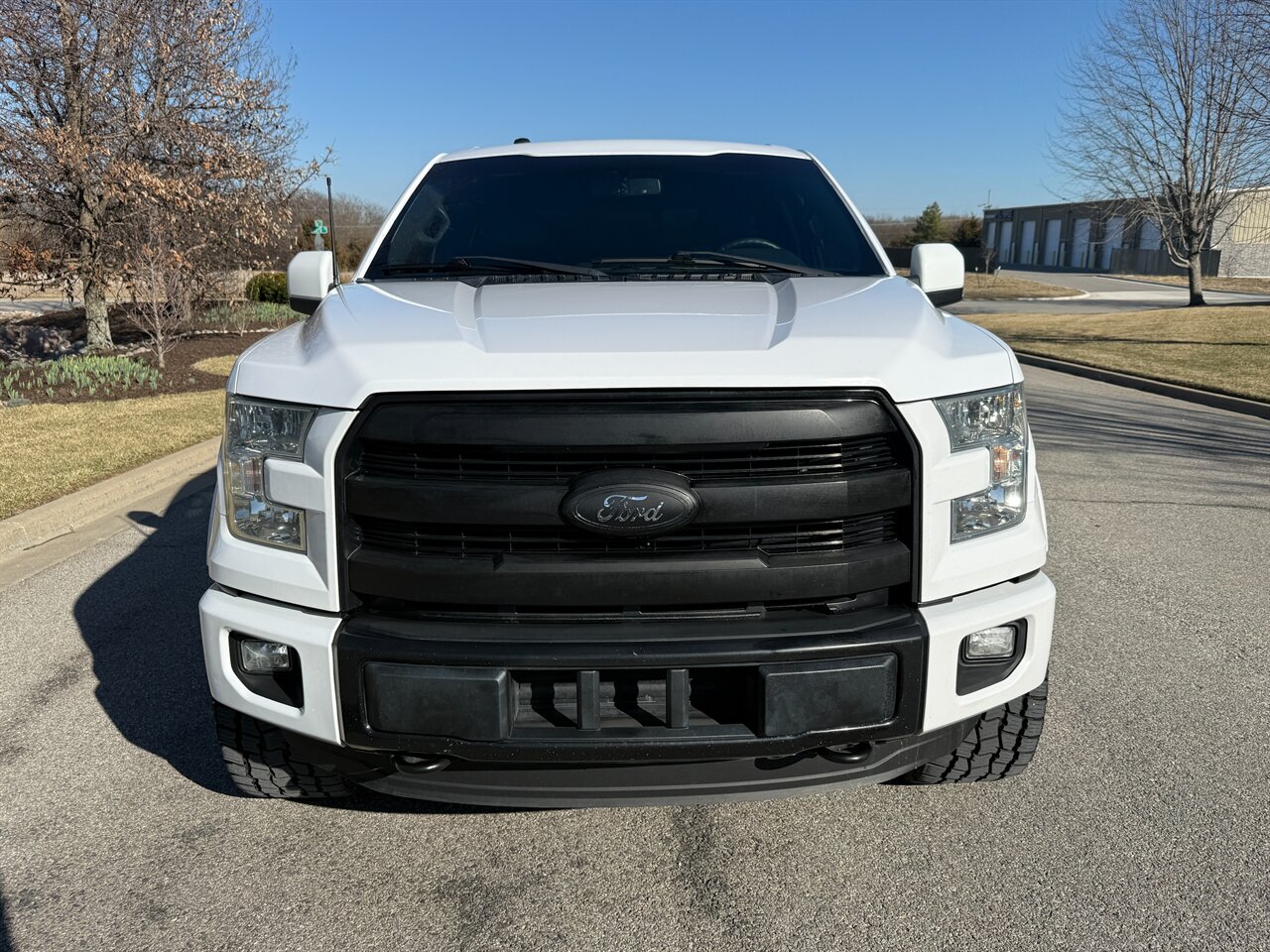Loaded 2015 Ford F-150 Lariat in Oxford White with a Black leather interior — a clean, well-cared-for example that blends strong towing capability with upscale comfort.