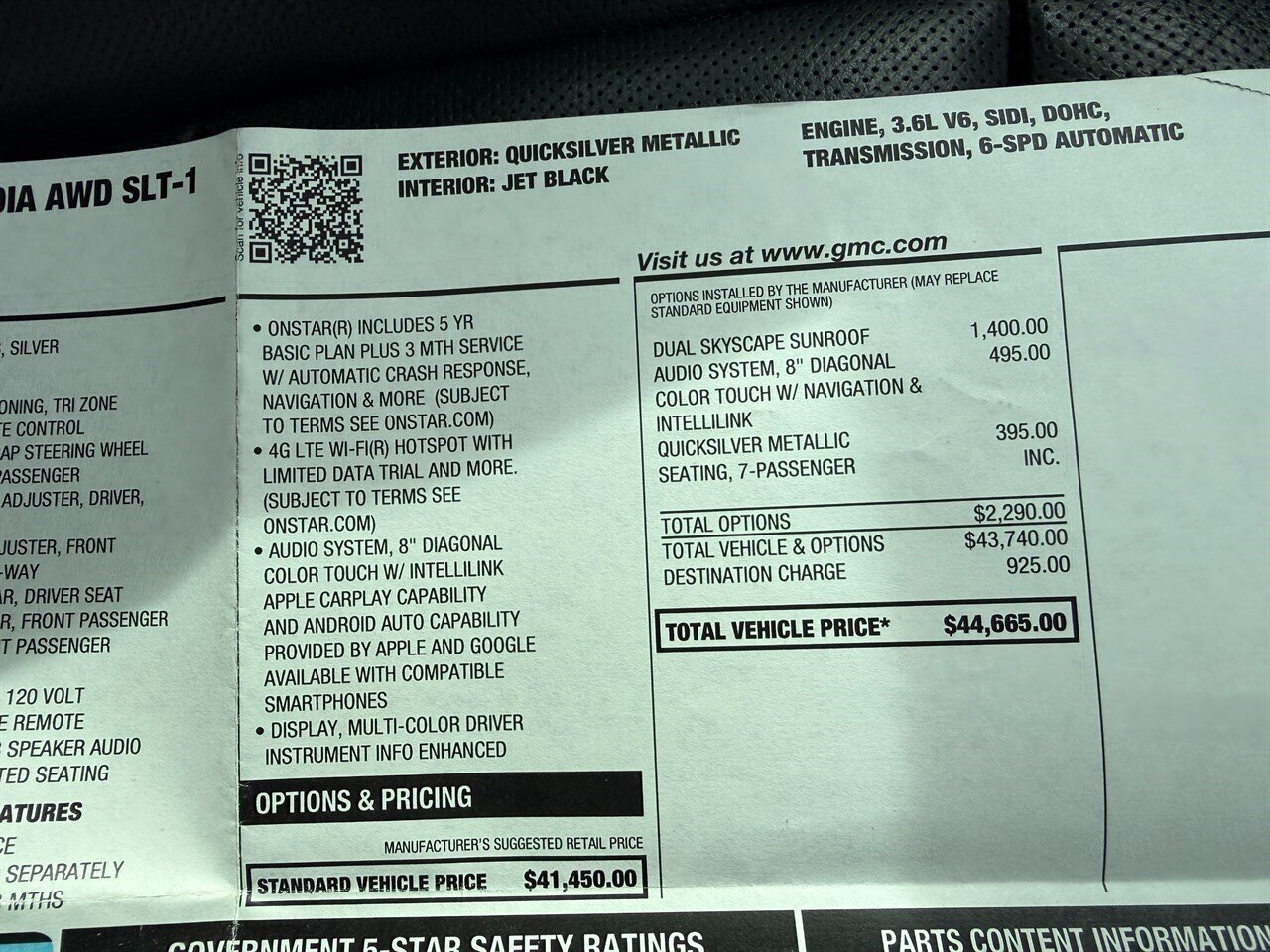 2017 GMC Acadia SLT-1 — 3.6L V6 Quicksilver Metallic exterior | Jet Black interior | 7-passenger