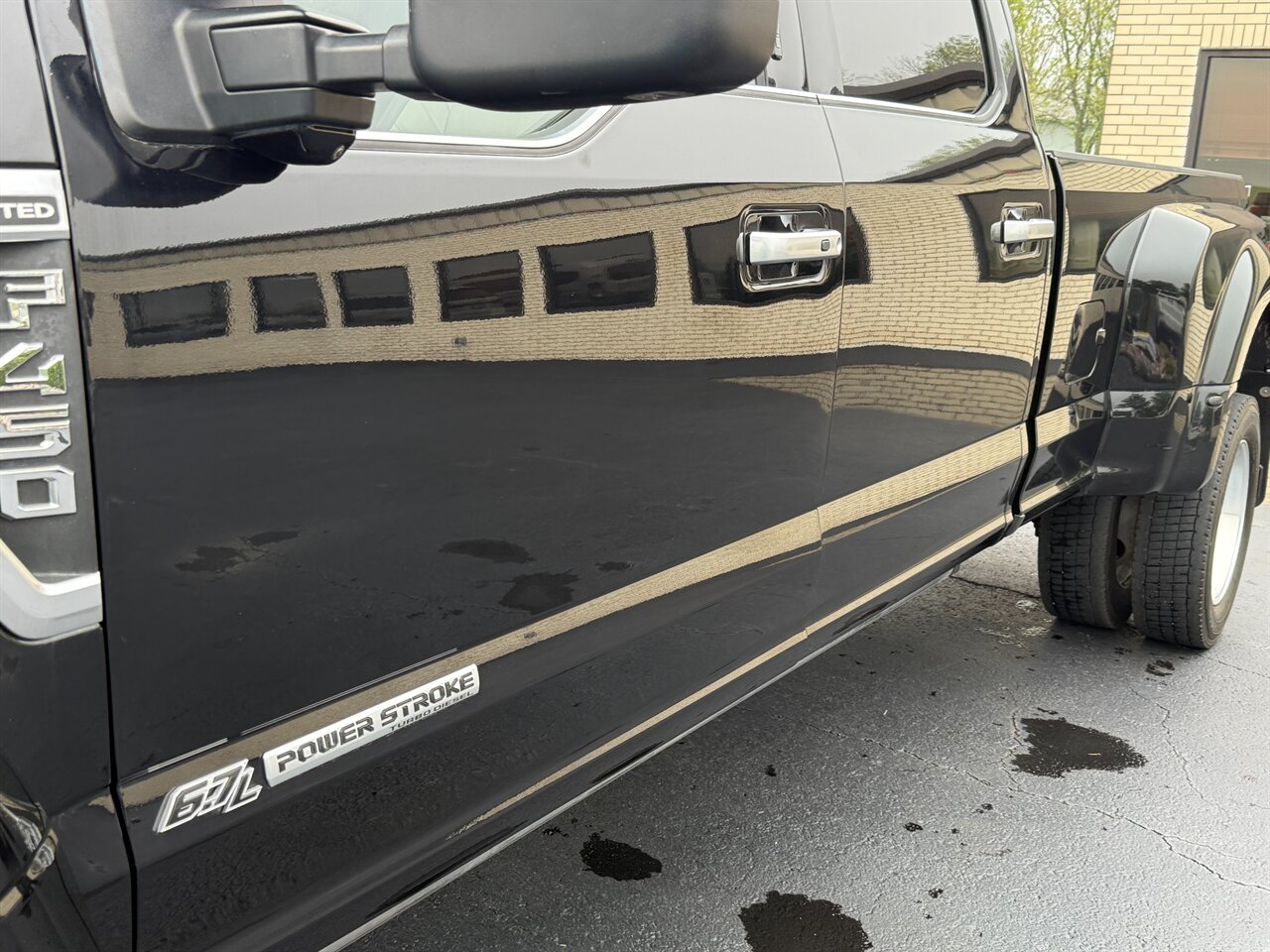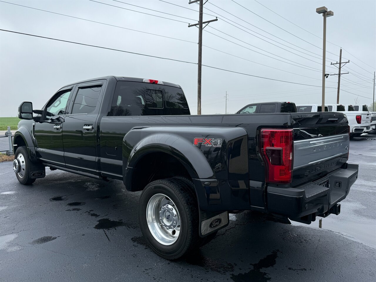 2019 Ford F-450 Super Duty Limited — Agate Black exterior with a beautiful Camelback leather interior. This is a top-level Super Duty built to tow, haul and pamper: powered by the legendary Power Stroke 6.7L biodiesel-capable turbo V8 producing 450 hp and approximately 935 lb-ft of torque, paired to Ford’s heavy-duty TorqShift automatic transmission for smooth, confident towing performance.