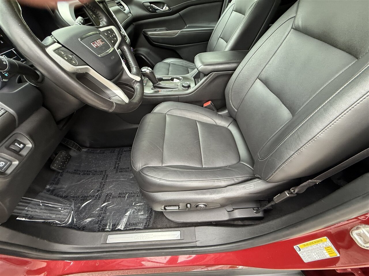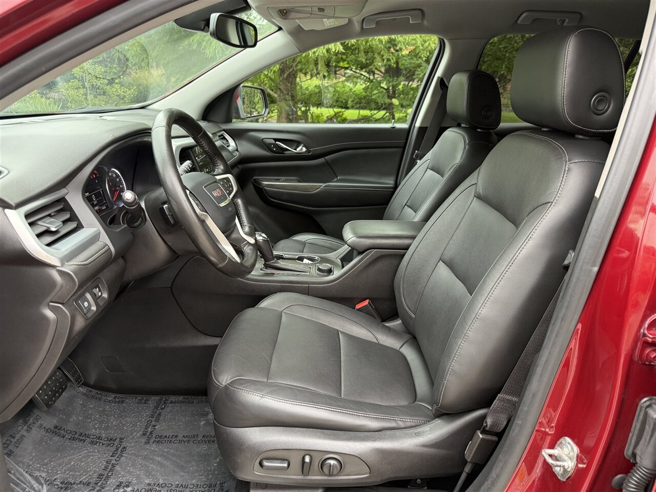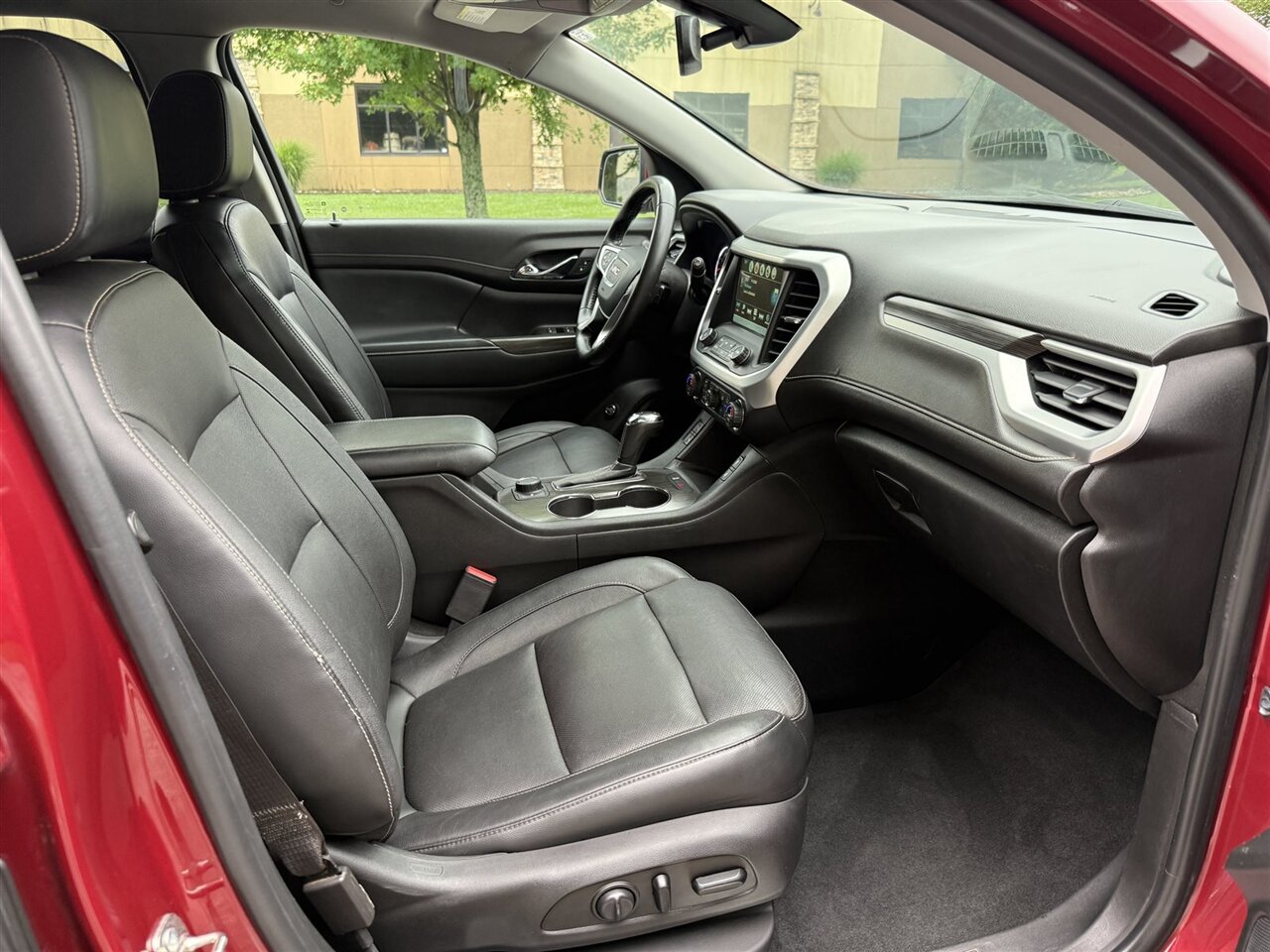 Standing out in a crowd, this GMC Acadia SLT-1 comes in a striking Red Quartz Tintcoat exterior paint that exudes elegance and sophistication. The glossy finish is a sight to behold, showcasing the vehicle's pristine condition. With no scratches or rust in sight, this SUV has been meticulously maintained to keep its original allure intact.