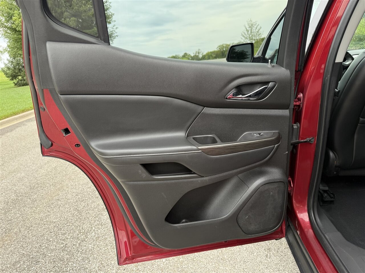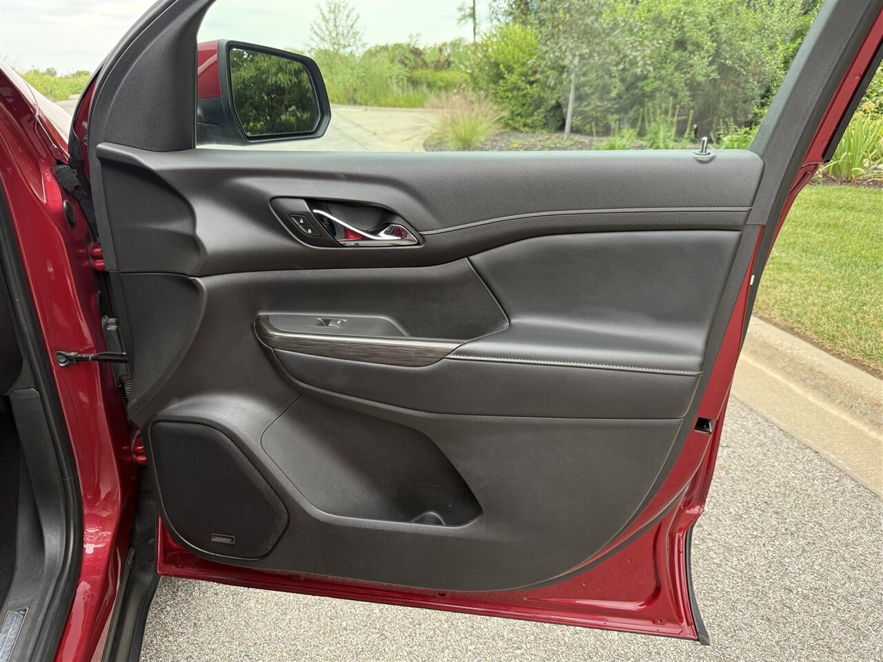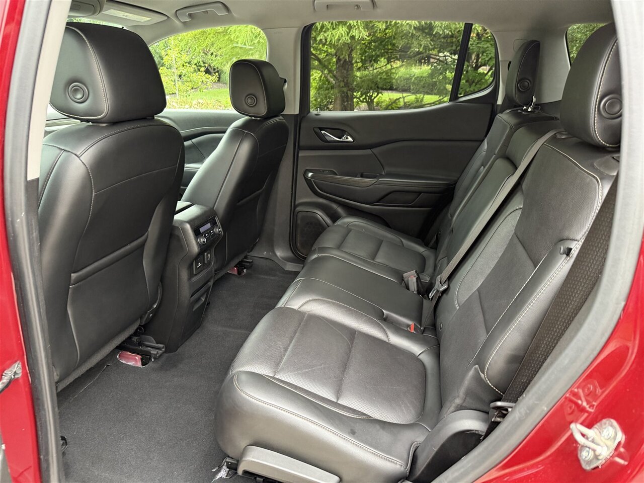Standing out in a crowd, this GMC Acadia SLT-1 comes in a striking Red Quartz Tintcoat exterior paint that exudes elegance and sophistication. The glossy finish is a sight to behold, showcasing the vehicle's pristine condition. With no scratches or rust in sight, this SUV has been meticulously maintained to keep its original allure intact.