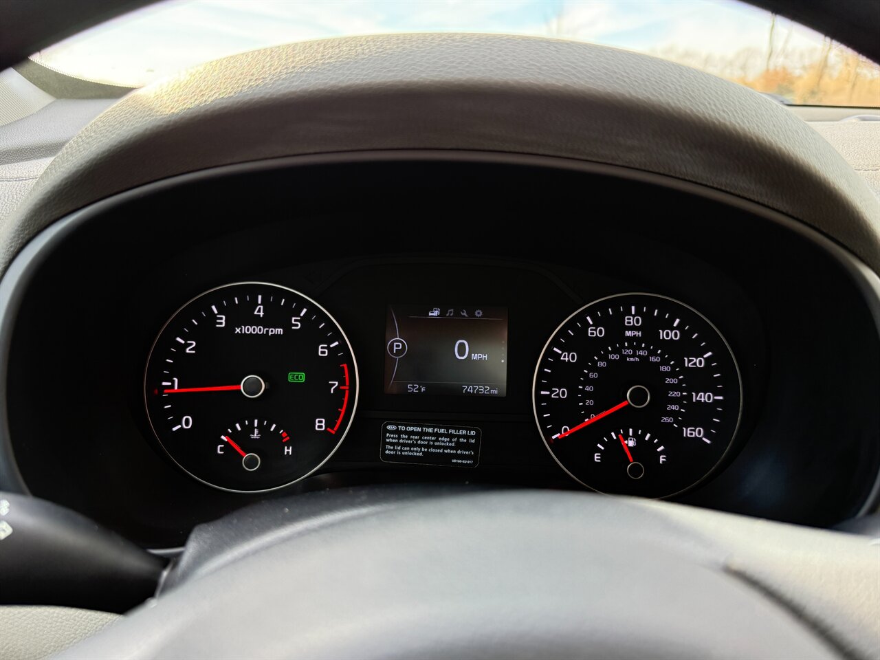 This 2019 Kia Sportage LX is a clean, well-maintained compact SUV with the reliable 2.4L I4 engine producing 181 hp and 175 lb-ft of torque. It delivers an efficient 21 MPG city / 25 MPG highway and has good mileage for its age (under 75,000 miles, averaging less than 10,000 miles per year).