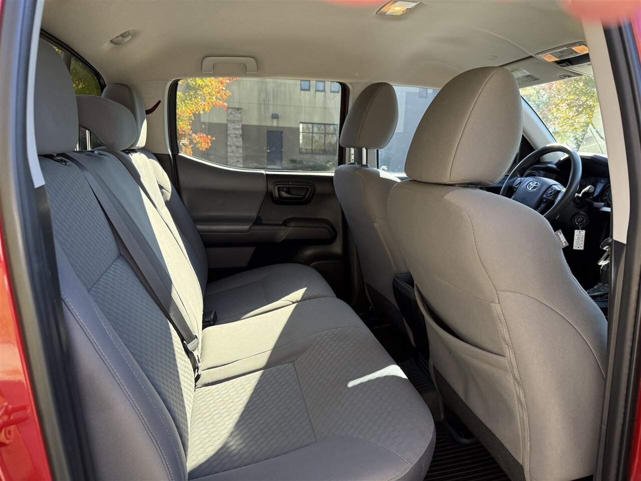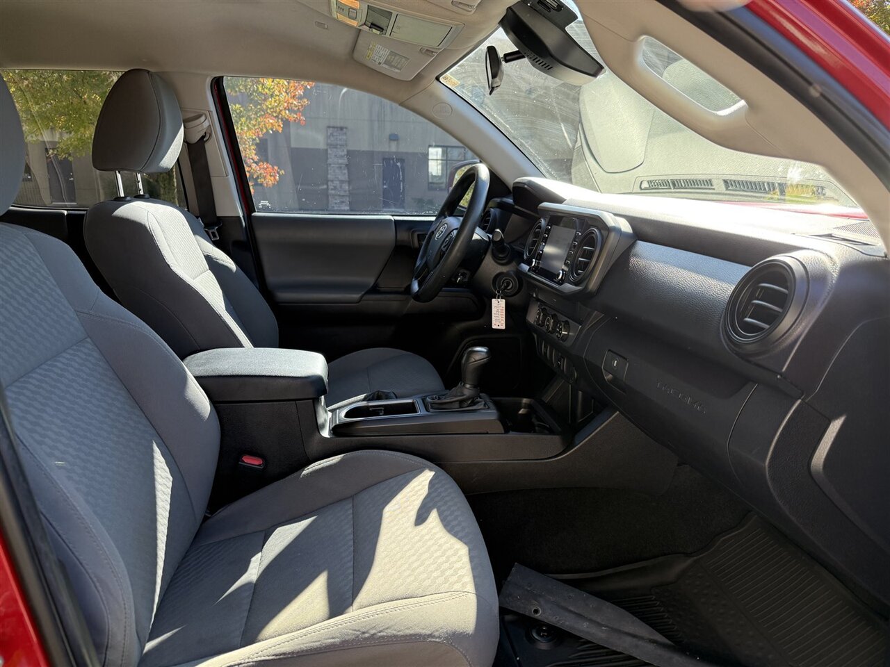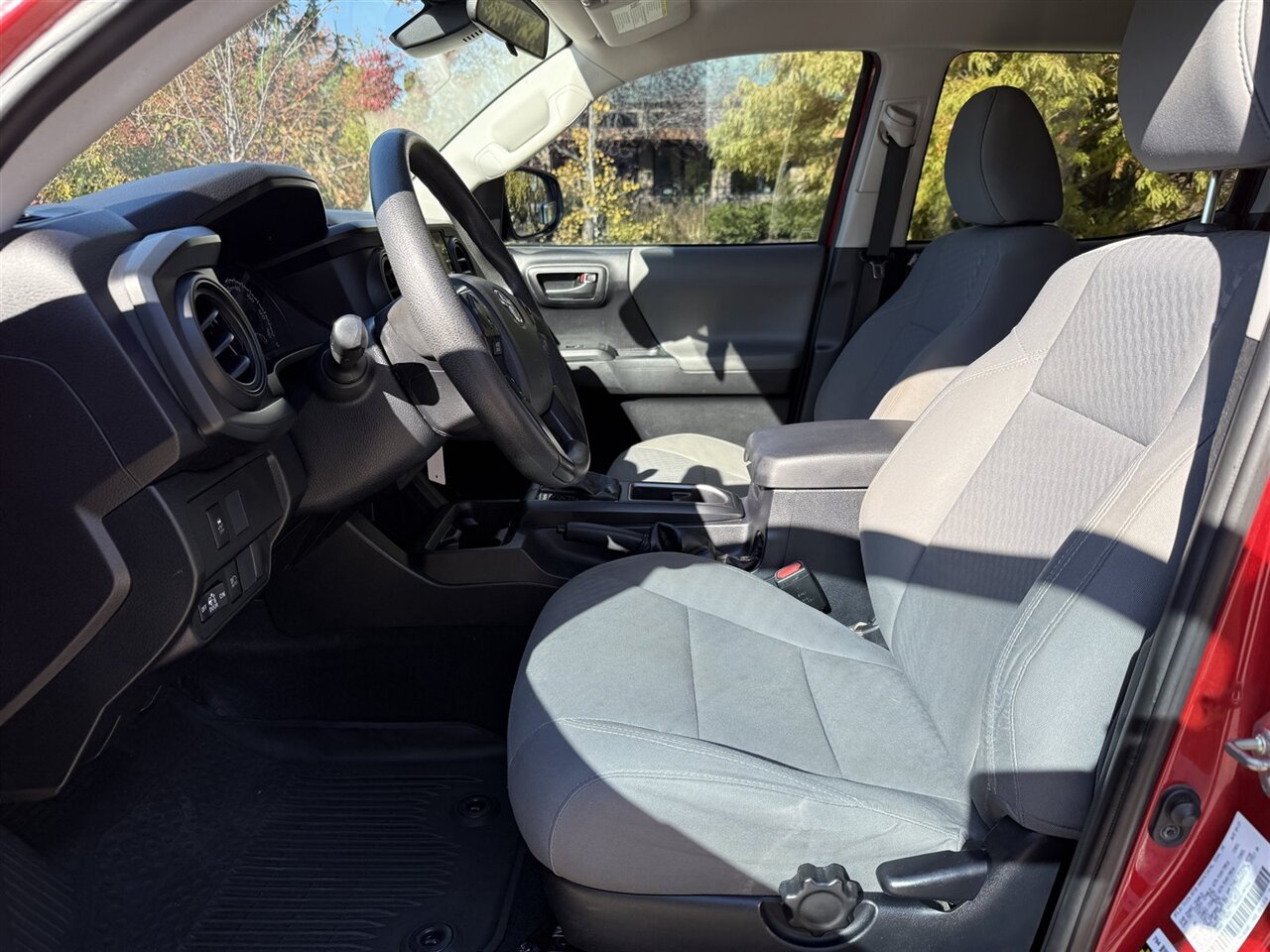 Inside, the Cement Gray interior offers a modern and comfortable atmosphere. The seats are upholstered in durable fabric, designed to withstand everyday wear and tear while providing ample support for longer drives. The Tacoma SR comes with a 60/40 split rear seat that allows for flexible cargo and passenger configurations. Additionally, the truck features a 4-way adjustable driver's seat and a tilt-and-telescoping steering wheel, allowing drivers to find their ideal driving position with ease.