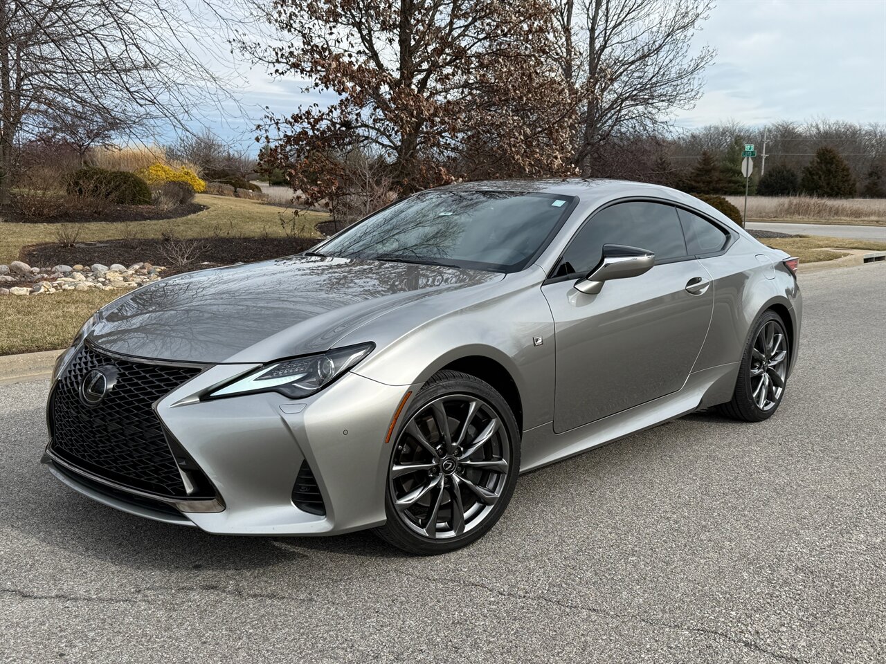 2021 Lexus RC350 F SPORT — Atomic Silver exterior with a Black interior and Dark Gray Streamline trim. Powered by a responsive 3.5L V6 producing 311 hp and 280 lb-ft of torque, this coupe pairs strong performance with everyday usability. It returns an EPA-estimated 19 MPG city and 26 MPG highway and has exceptional real-world usage — under 17,000 miles total (averaging less than 3,000 miles per year).