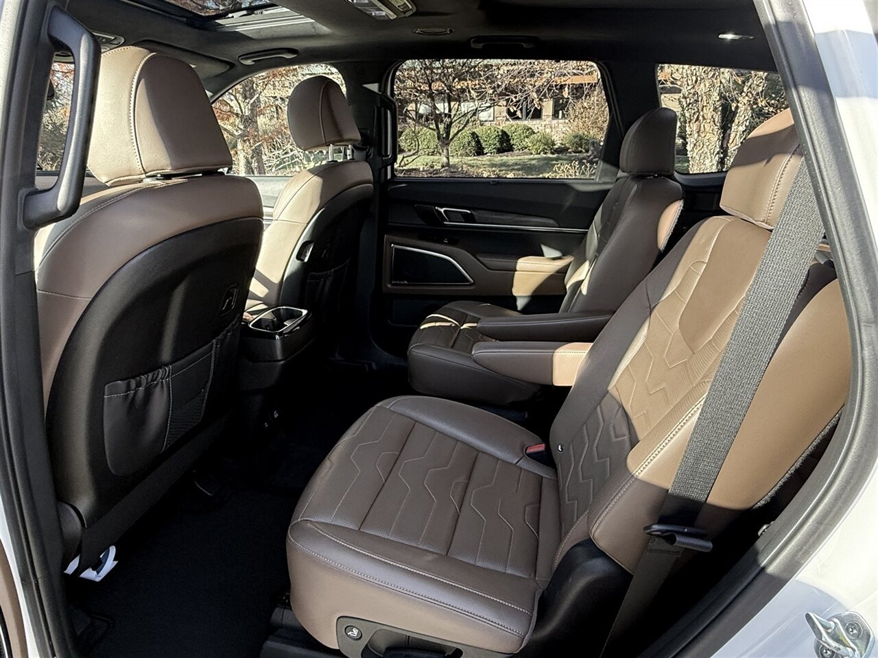 With the Nightfall Edition package, the Telluride SX boasts a striking design with blacked-out accents, including a black grille, roof rails, and 20-inch black alloy wheels. This package elevates the SUV's aesthetics and gives it a bold, sporty appearance that is sure to turn heads. The vehicle’s glossy original paint is in excellent condition, with no scratches, dents, or rust, showcasing the care and attention it has received from its previous owner.