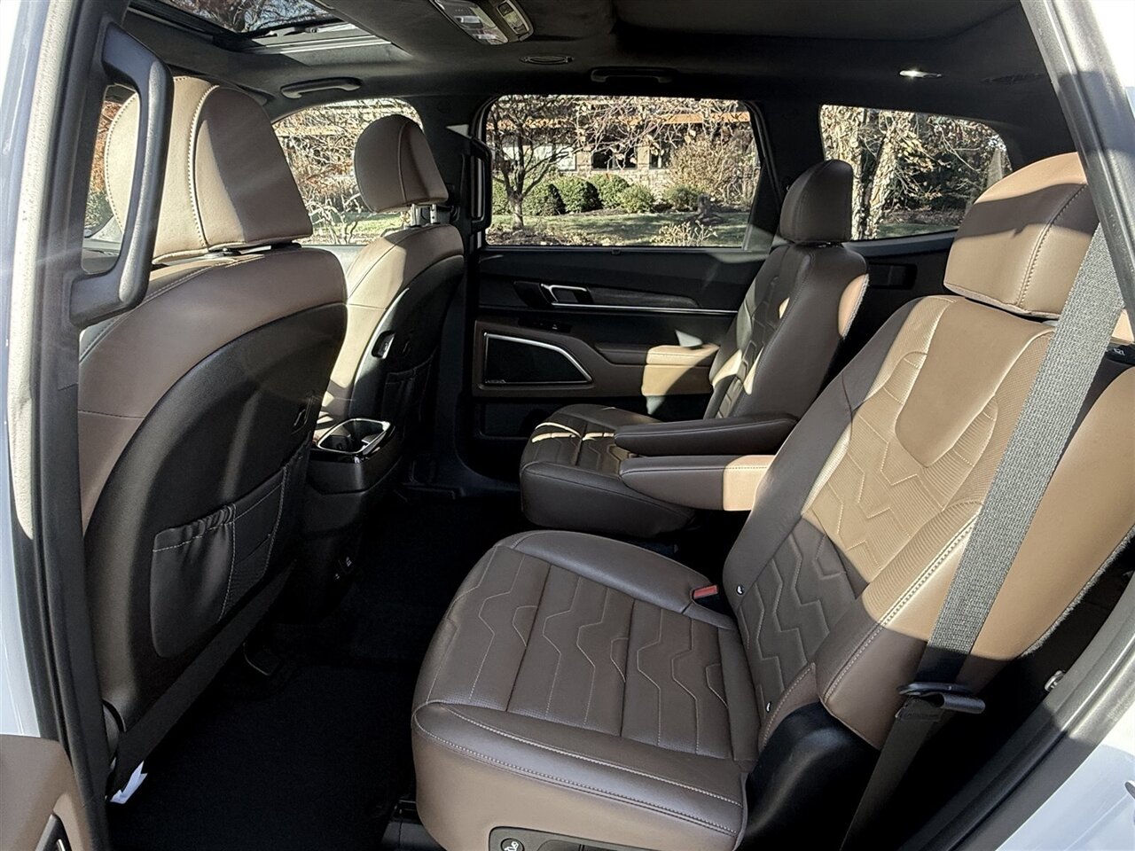 As you step inside, you'll be welcomed by a luxurious Black interior, further enhanced by the exquisite Dune Brown Nappa Leather Seats included in the Prestige Package. This thoughtful combination of colors creates an inviting atmosphere that is both stylish and comfortable for all passengers. The Telluride SX is equipped with a plethora of factory default features that make every ride enjoyable and convenient.